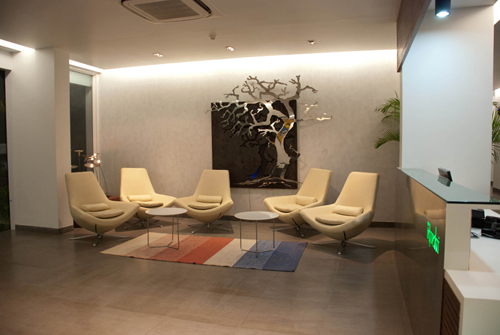 Whileone could safely say that a healthy measure of art and nature anoint thisoffice, it is the God in details that essentially wraps it into a well-groomedcorporate set-up, refined and chiselled to upbeat suaveness.